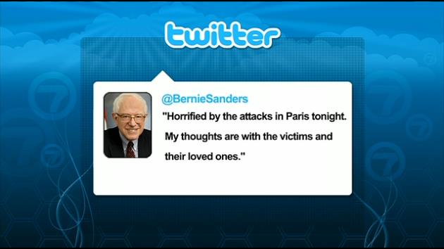 Bernie Sanders tweeted "Horrified by the attacks in Paris tonight. My thoughts are with the victims and their loved ones."