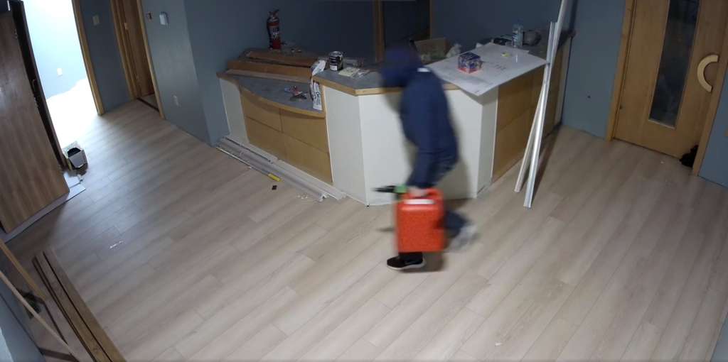 The 30-second video shows a person in a hooded shirt and mask carrying what appears to be a red fuel can through a room. The white woman is around 5 feet, 7 inches (170 centimeters) tall, with a medium build, and apparently acted alone, police said Tuesday in a Facebook post.