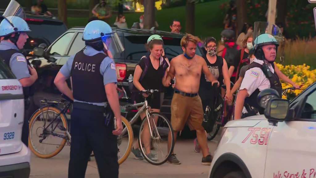 About 12 people were arrested and could potentially face charges that may include battery to a police officer, mob action, and/or other felonies, according to the statement.