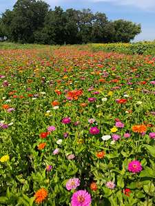 In addition to sunflowers, Thompson also planted a field of zinnias, a field of wildflowers, and Mexican sunflowers that are known for attracting butterflies.