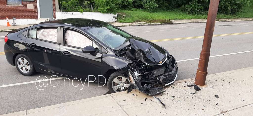 The driver is OK, Cincinnati police tweeted. The department posted a video showing officers interacting with the man after the crash.