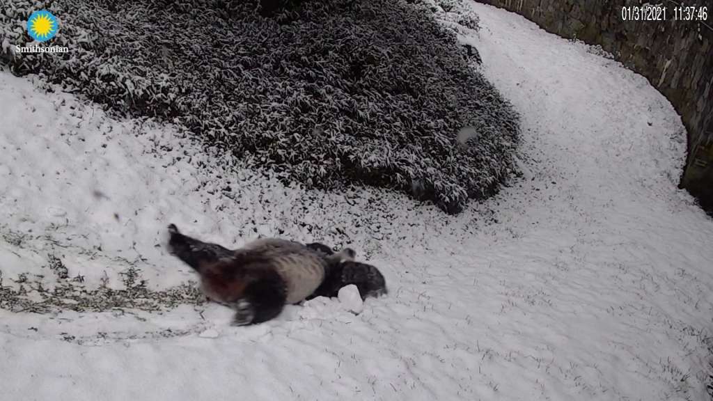 The Smithsonian National Zoo shared videos of Mei Xiang and Tian Tian enjoying the snowfall.