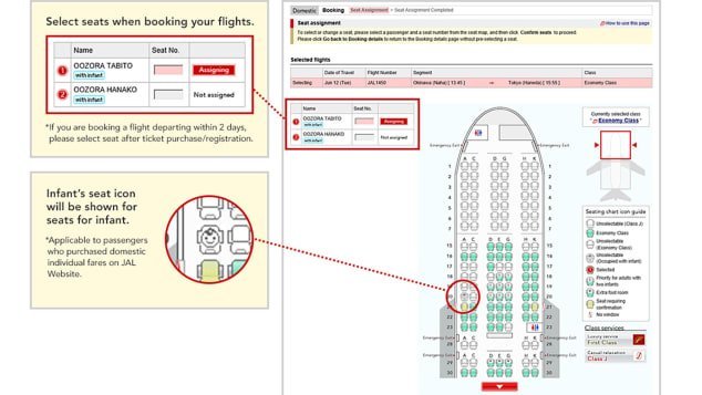 “Passengers traveling with children between 8 days and 2 years old who select their seats on the JAL website will have a child icon displayed on their seats on the seat selection screen,” reads the airline’s website.
