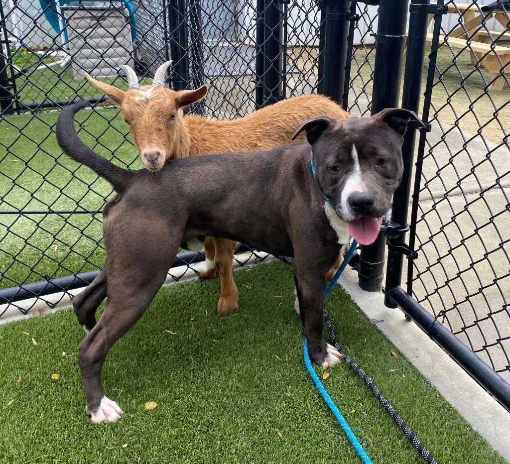 “Goats are social animals and so are dogs, so when they’re put together – it makes sense they would find friendship,” said Wake County Animal Center Director Dr. Jennifer Federico. “In many cases of interspecies friendship, the species are not normally seen together, and sometimes, one is of a species that ordinarily preys on the other in nature – whatever the reason for these two bonding, it’s clear what would be best for their well-being is to keep them together.”