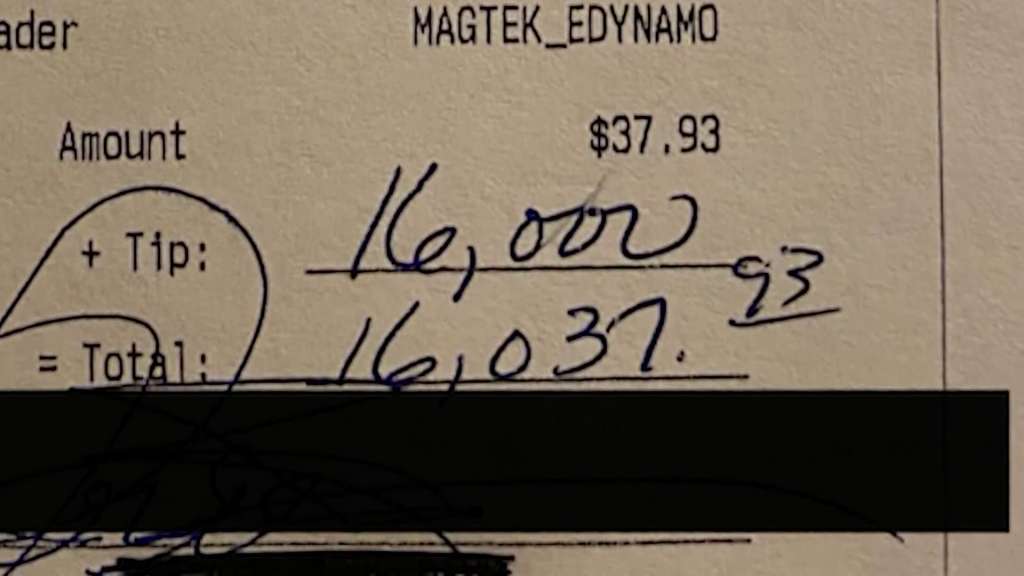 LONDONDERRY, N.H. (AP) — A customer who ordered a couple of chili dogs, fried pickle chips and drinks at a New Hampshire restaurant left a big tip — $16,000.