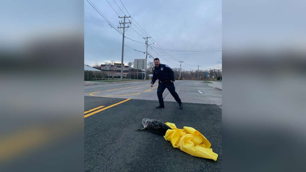 “Some of our officers responded and found a baby harbor seal in the roadway,” a Facebook post from the Southampton Town Police Department said.