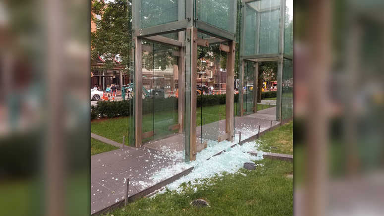 Police said a 17-year-old Malden boy smashed a glass panel on the memorial Monday evening. He was detained by two bystanders until officers arrived on the scene. Police said he will be charged with willful and malicious destruction of property. The police department’s civil rights unit also is investigating to determine if additional charges are warranted.