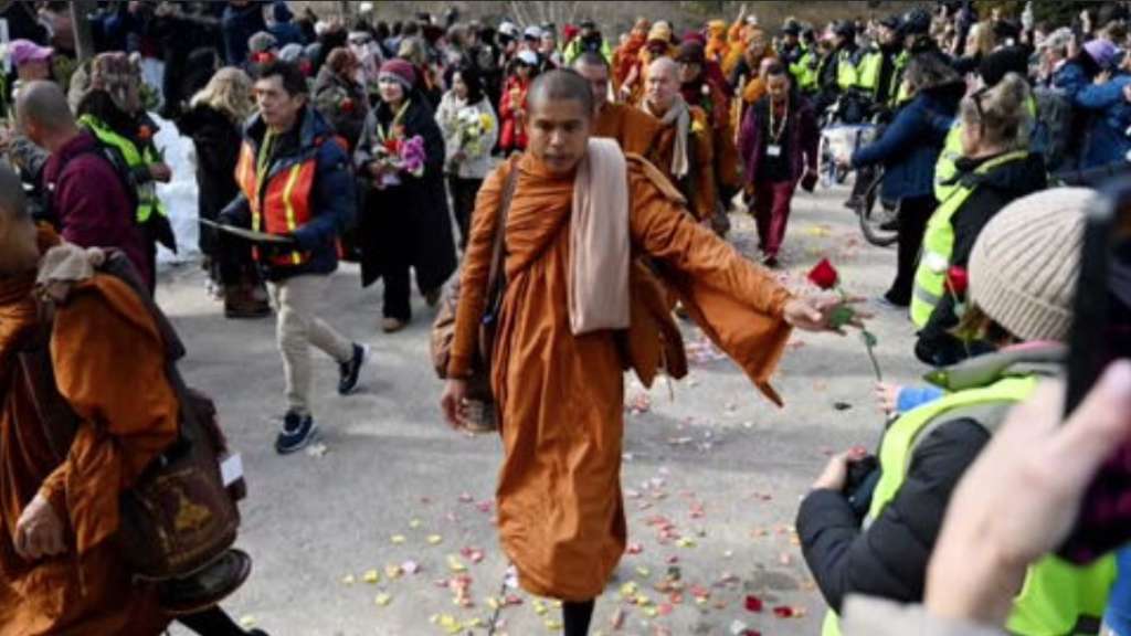 Peace walks are a cherished tradition in Theravada Buddhism. Some of the monks have walked barefoot or in socks during parts of the journey, to feel the ground directly and be present in the moment.