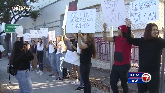 Plans for the protests circulated widely on social media on Saturday, as students, parents, teachers and neighbors gathered to express their grief over the fatal shooting of 14 students and three staff members at the Marjory Stoneman Douglas High School in Parkland. Hundreds showed up at rallies in Fort Lauderdale, about 25 miles (40 kilometers) away, and in St. Petersburg, 250 miles (400 kilometers) northwest, to demand action on gun-control legislation.