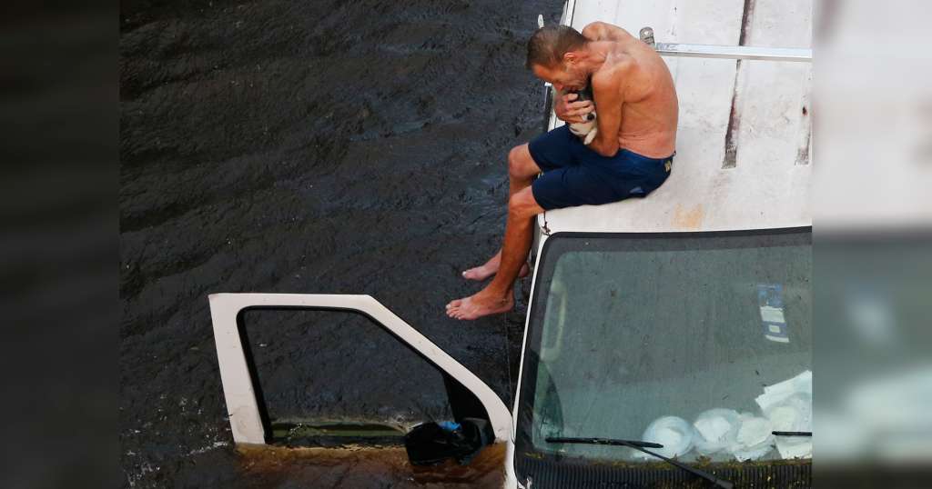 But when his van flooded, Schubert crawled on top of the immobilized vehicle, cradling his pup in his arms.
