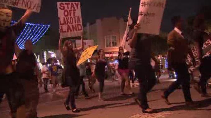 A group of protesters in Chicago targeted a bank, and another group went to an Army Corps of Engineers office in New York City but was asked to leave when they started filming without a permit. Several people were arrested for blocking public access to a federal building in San Francisco.