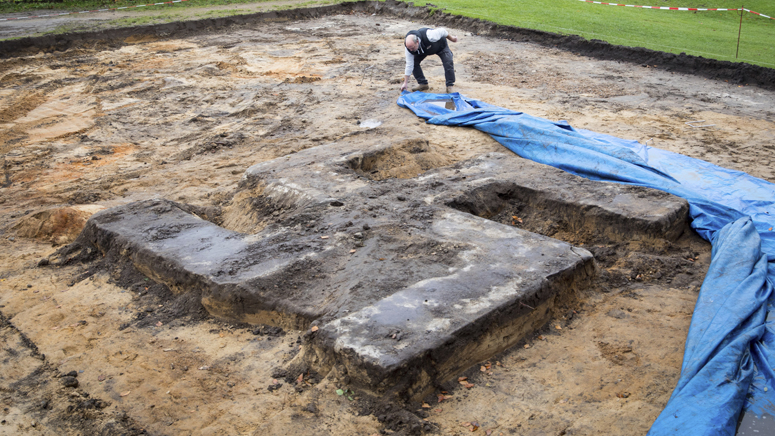 The German news agency dpa reported Tuesday workers were digging in the ground with an excavator to build changing rooms when they suddenly hit the four-by-four meter (13-by-13 foot) Nazi symbol.