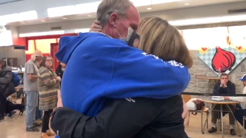 John made his way back home to Utah, while his wife finished her quarantine in California. John arrived home one day before his wife and he went to pick her up from the airport. When the pair met, the emotion was palpable.