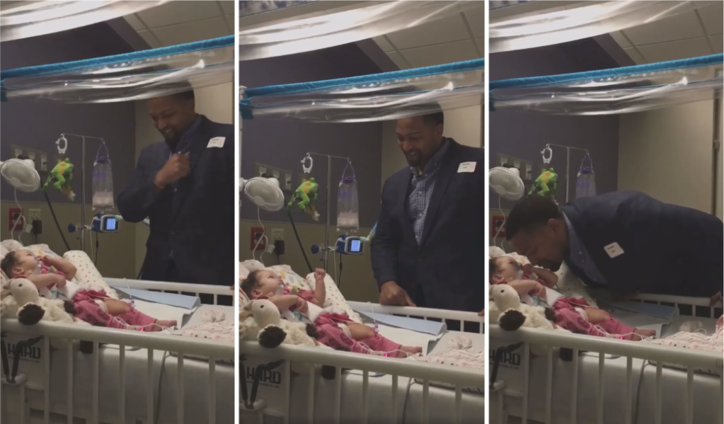 OKLAHOMA CITY, Okla. (WSVN) — An adorable moment between a father and his baby daughter battling a rare illness was caught on camera.