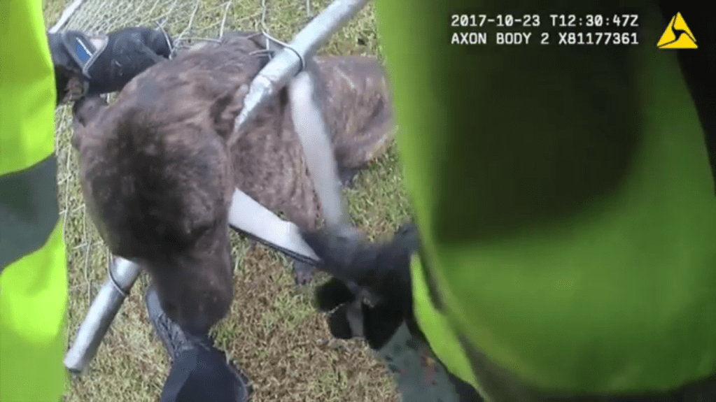 GREENVILLE, SC (WSVN) — A deputy in South Carolina helped free a dog who clearly did not like being fenced in.