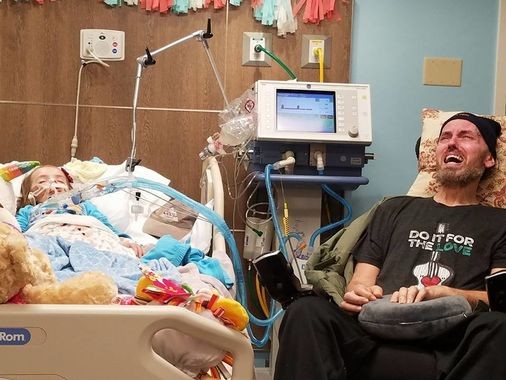 The photo shows Braylynn in a hospital bed as her grandfather cries in a chair nearby. The grandfather has also been diagnosed with ALS and doesn’t have much longer to live.