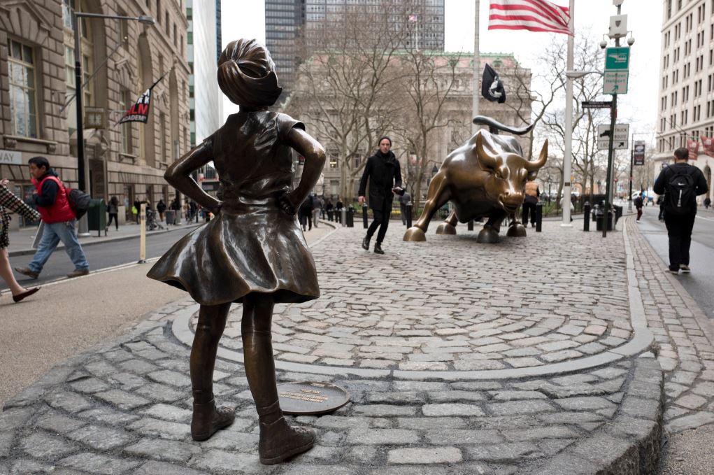 The ponytailed girl in a windblown dress became an internet sensation last spring when the artwork popped up confronting the famous bull that was a symbol of the American financial resilience in the wake of the 1987 stock market crash.