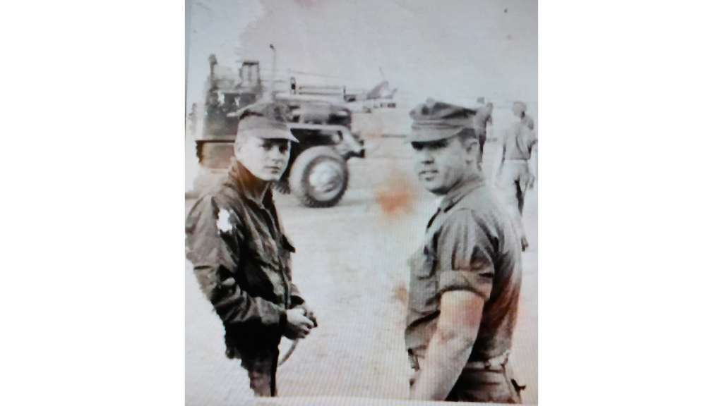 Cox and Hollingsworth flew missions together as helicopter door gunners. On the ground in Vietnam, Hollingsworth helped maintain the choppers. Cox kept track of ammunition.