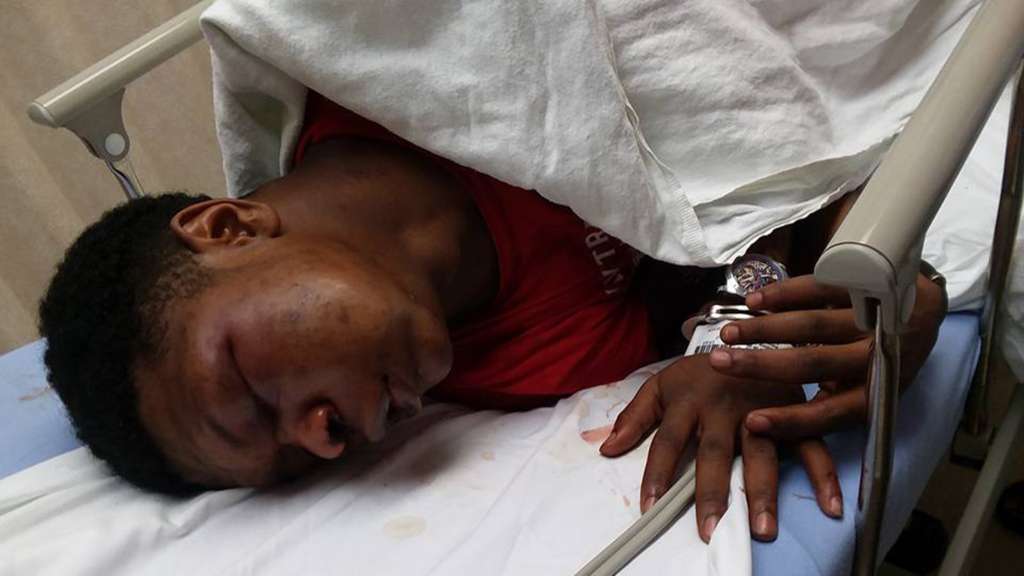 Photos — one of which mother Angela Williams posted on Facebook, where it was shared more than 80,000 times — show Ulysses Wilkerson in a hospital bed, the white sheet beneath his head bloody. His nose and lips are crusted in blood, and his left eye is swollen shut.