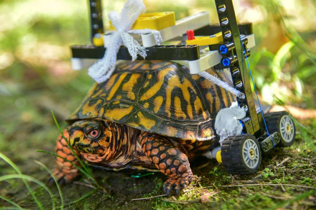 BALTIMORE (AP) — A wild turtle with a broken shell is rolling around on a wheelchair made of Legos while he’s on the mend at the Maryland Zoo.