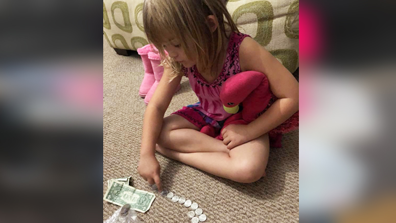 Jackie Oelfke thought her granddaughter, Sunshine Oelfke, was fooling around when she spotted her dumping coins onto the floor. In a Facebook video, Oelfke said she grew more curious when Sunshine counted the money, put it into a plastic bag and then loaded it into her backpack.