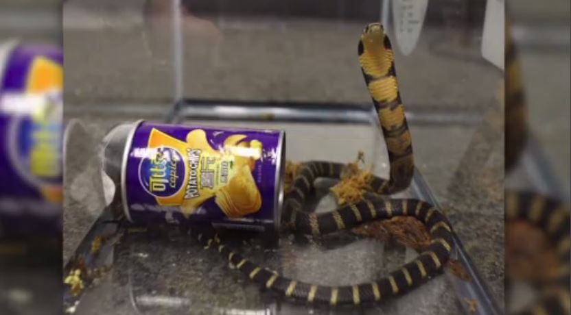 LOS ANGELES (AP) — A man was arrested on federal smuggling charges Tuesday after customs officers intercepted a shipment with three live king cobras hidden inside potato chip canisters that were being mailed to his California home, U.S. prosecutors said.