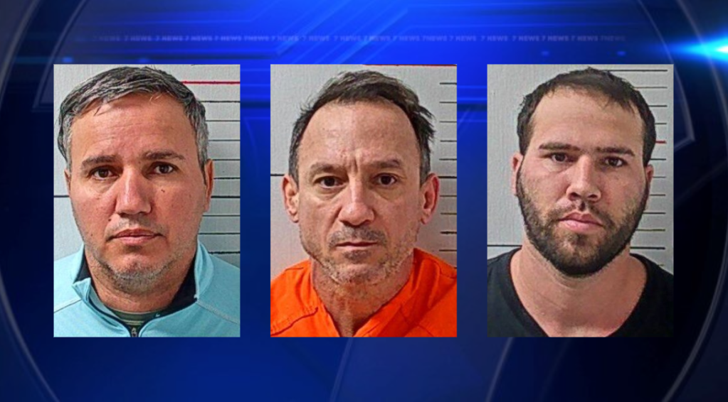Xavier Perez, 52, Alexander Trujillo Gomez, 48, and Lazaro Salazar Hechavarria, 28, face multiple charges, including two counts of burglary, theft of property valued at over $250,000, and vandalism.