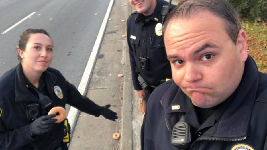 BROOKHAVEN, Ga. (WSVN) — A police department in Georgia is in mourning after dozens of Krispy Kreme doughnuts were tragically lost after they spilled off a truck.