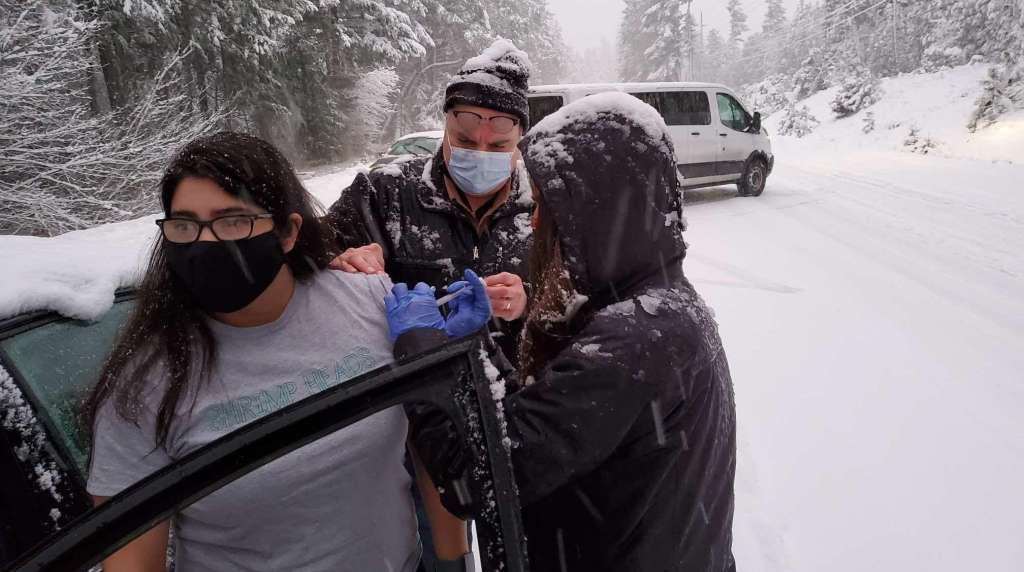GRANTS PASS, Ore. (AP) — Oregon health workers who got stuck in a snowstorm on their way back from a COVID-19 vaccination event went car to car injecting stranded drivers before several of the doses expired.