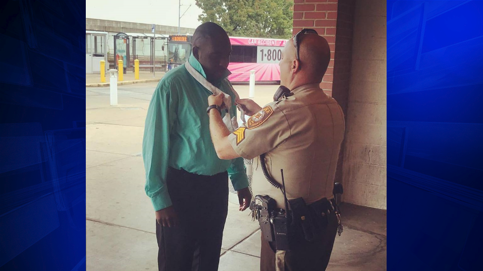 ST. LOUIS (WSVN) — On their sleeves, it says “To Serve and Protect.” On Monday, that also meant to help tie a Windsor knot.