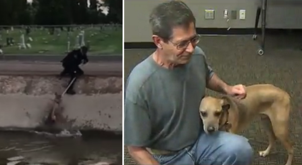 MESA, Ariz. (WSVN) — Cell phone footage captured a police officer rescuing a dog struggling to swim in an Arizona canal.
