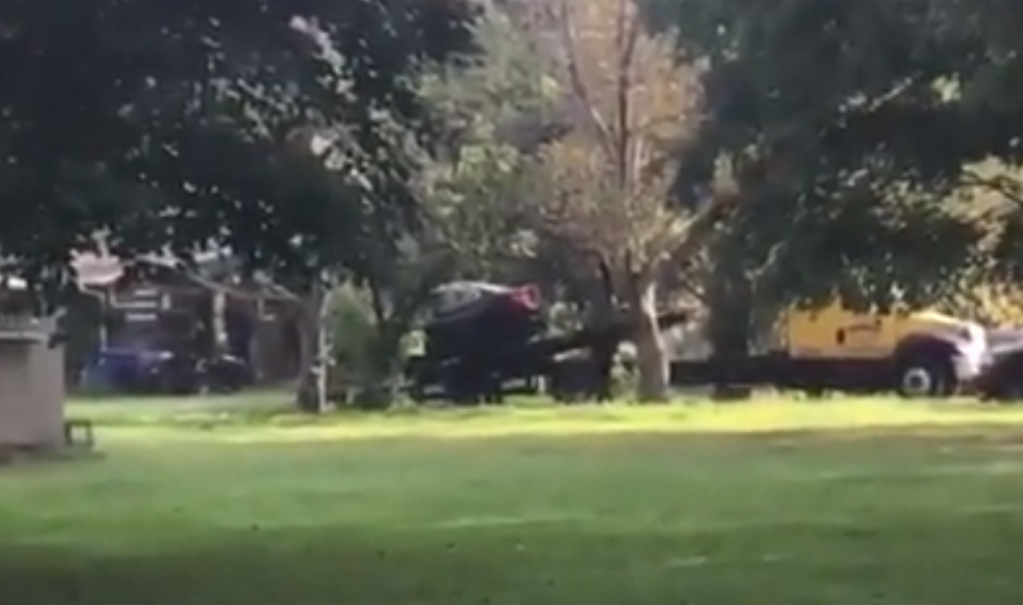 BMW hauled away from Bordentown home where authorities executing search warrant. Kate McClure and Mark D’Amico accused of defrauding a homeless veteran of donations. pic.twitter.com/j6DANOmOUd