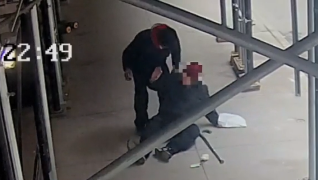 The suspect can be seen pulling the victim’s cane and reaching into his pocket, causing the startled man to lose his balance and fall to the ground. That’s when the robber leaned over him, taking his wallet.