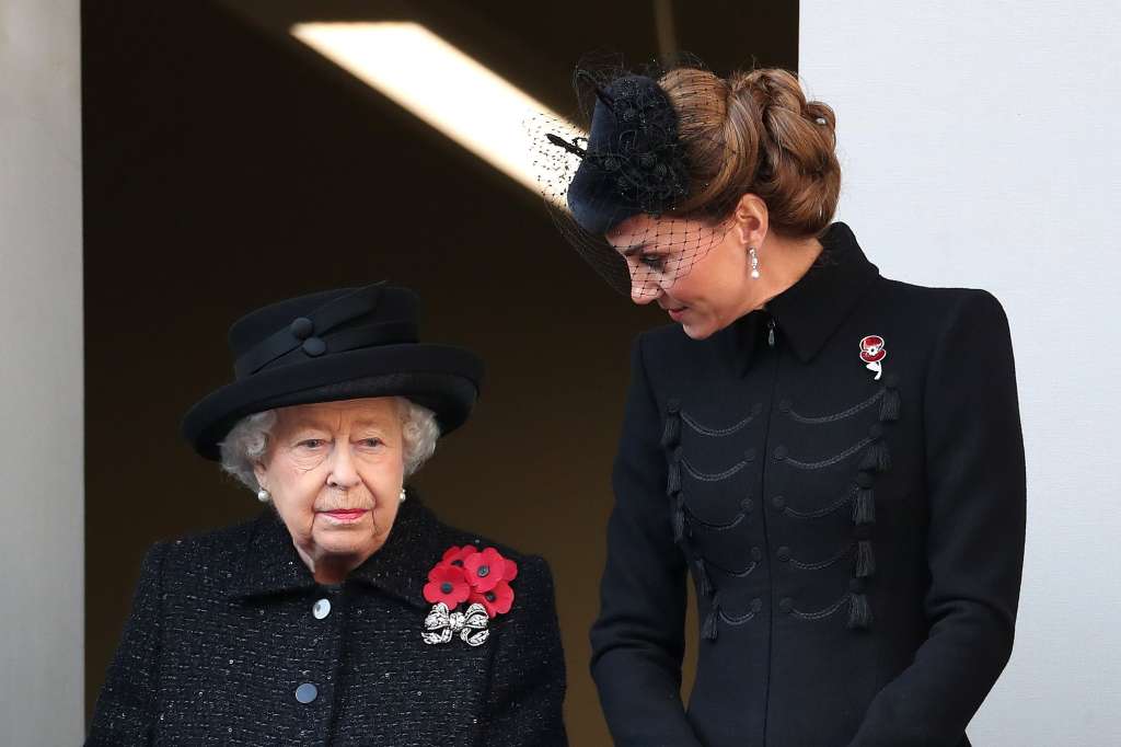 The 93-year-old monarch watched the service from the balcony of the Foreign & Commonwealth Office building as her son, Charles — the Prince of Wales — laid a wreath on her behalf.