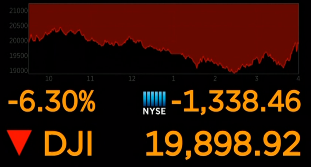 The Dow industrials lost more than 1,300 points, or 6.3%. After a brutal few weeks, the Dow has now lost nearly all of its gains since President Trump’s inauguration.