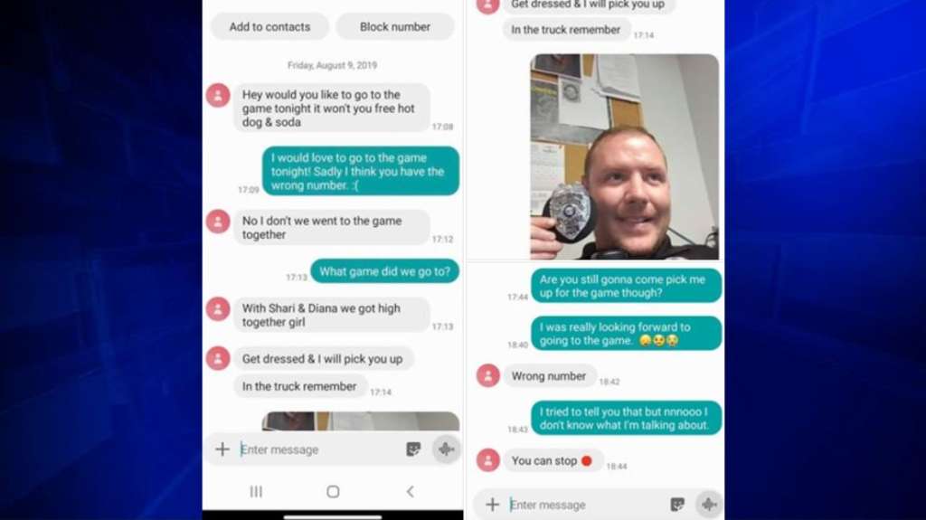 “Are you still gonna come pick me up for the game though?” the officer wrote. “I was really looking forward to going to the game.”