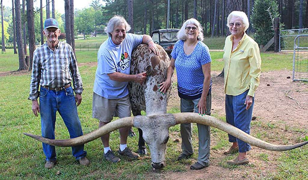 “All my neighbors (around) here, any time they have company, they come over to see the longhorn,” Pope said in the news release. “He’s just a big, gentle character. Everyone brings (food) with them — he likes apples, carrots and marshmallows.”