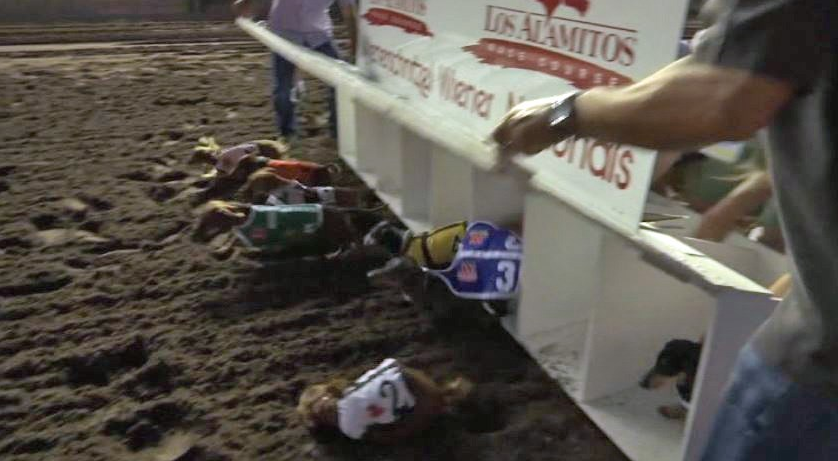 About 10,000 people showed up to watch Dachshunds competing for the title of “Fastest Wiener in the West” at California’s Los Alamitos race course Saturday.