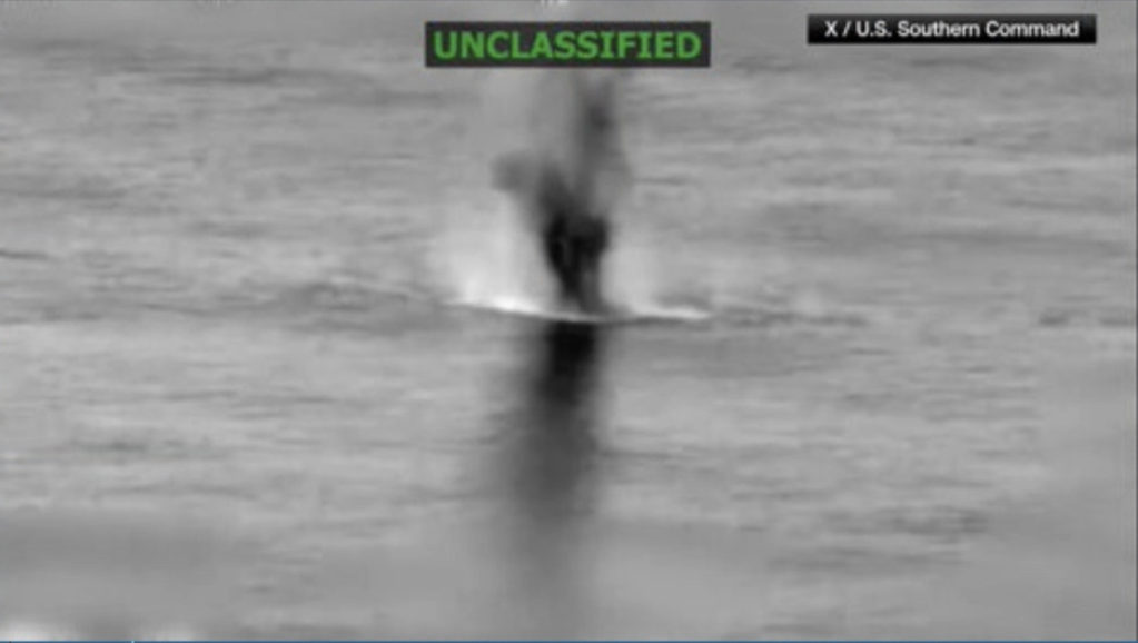 In the latest attack Friday, U.S. Southern Command repeated previous statements by saying it had targeted the alleged drug traffickers along known smuggling routes. It posted a video on X showing a boat floating in the water before a explosion left it in flames.