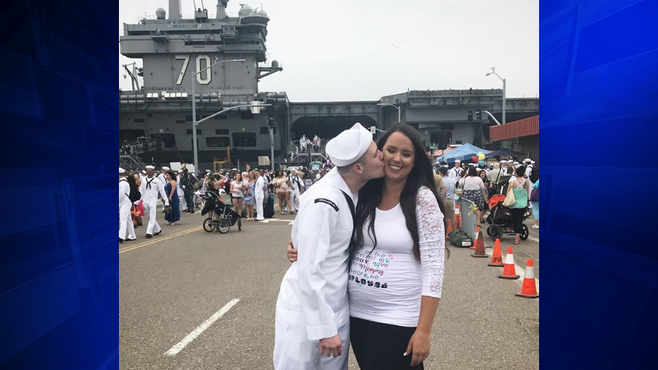 TEMECULA, Calif. (CNN/KTLA) — When a military wife found out she was pregnant, she knew it would be the best surprise for her husband to come home to, so she took pains to hide the news until he returned to the states.
