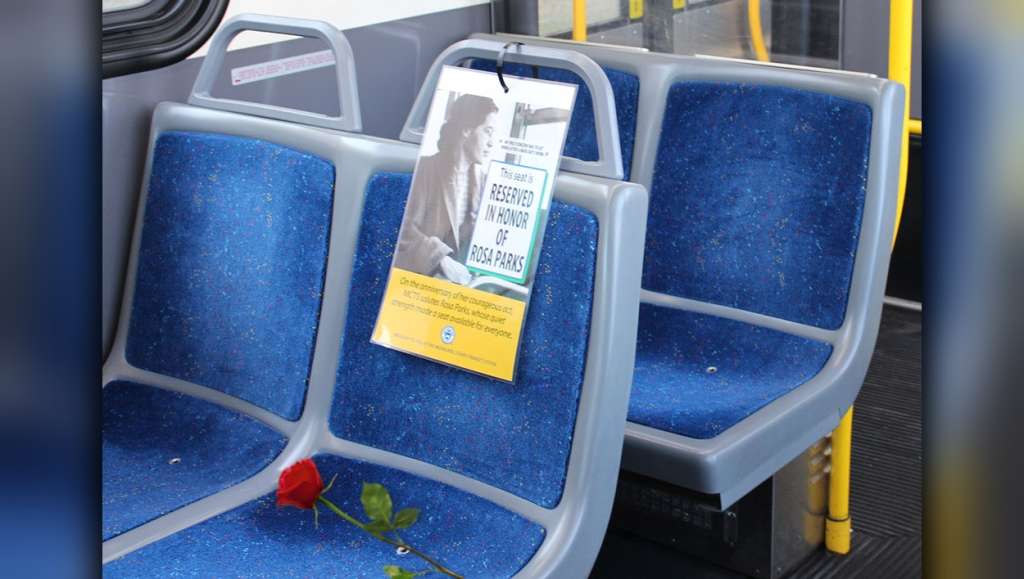We're proud to once again honor #RosaParks by keeping a seat open and placing a red rose on every bus from Friday, November 30 through Sunday, December 2. https://t.co/Q4ww2ZSX8D pic.twitter.com/o401pcTfJ5