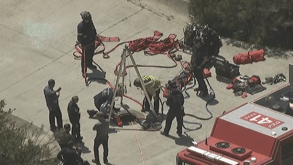 “Units entered into the sewage system into what we call a confined space. They went through all the processes to permit it to make a safe entry, and then firefighters were literally inside the sewage or storm drain, crawling on their stomachs to try and locate the victim,” Windsor said. “Firefighters were opening manhole covers all along the storm drain system, and then they were eventually able to finally locate here in an area uphill from where we had been searching, at which point they reestablished the rescue efforts, built a system of ropes and pulleys, and lowered personnel down into the storm drain.”