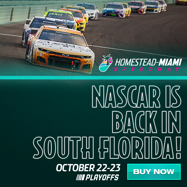 NASCAR IS BACK IN SOUTH FLORIDA – Championship hopes will be on the line with one of the last chances to lock into the Championship 4. Watch the stars of NASCAR race to keep their dream alive. BE HERE October 23.