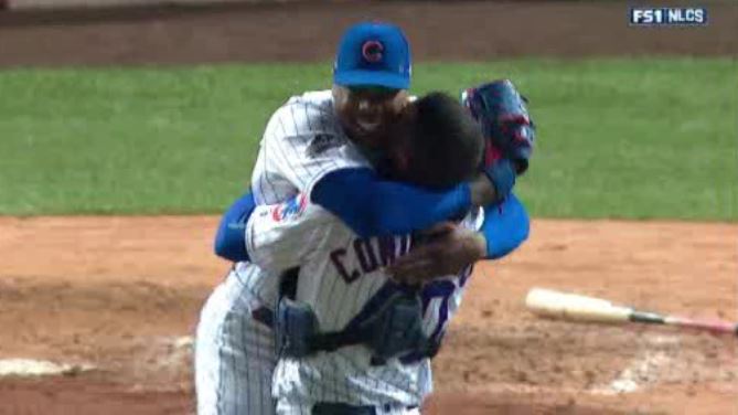 Hendricks pitched two-hit ball for 7 1/3 innings. Chapman got the final five outs, then threw both arms in the air and got mobbed by teammates and coaches.