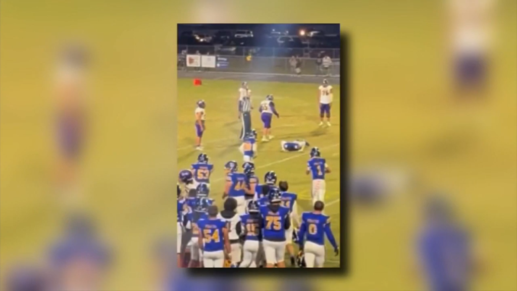 Video circulating on social media shows an 18-year-old high school football player near Jacksonville ripping off another player’s helmet and then using it as a weapon.