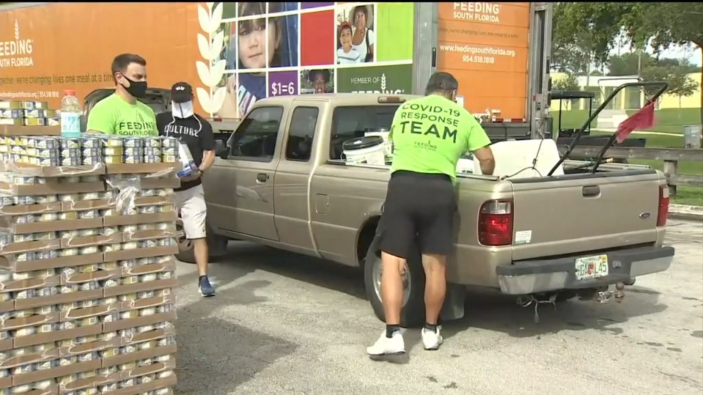 On Monday, the Heat, State Farm and Florida Blue helped Feeding South Florida distribute food, hand sanitizer and wet wipes in Northwest Miami-Dade.