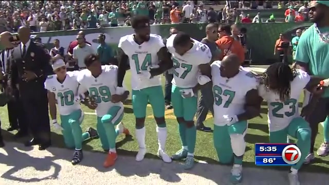 More than 200 NFL players kneeled or raised fists during the anthem and almost three entire teams stayed in the locker room in response to Trump saying NFL owners should fire players who kneel during the anthem and describing those protesters with the term “son of a bitch.”