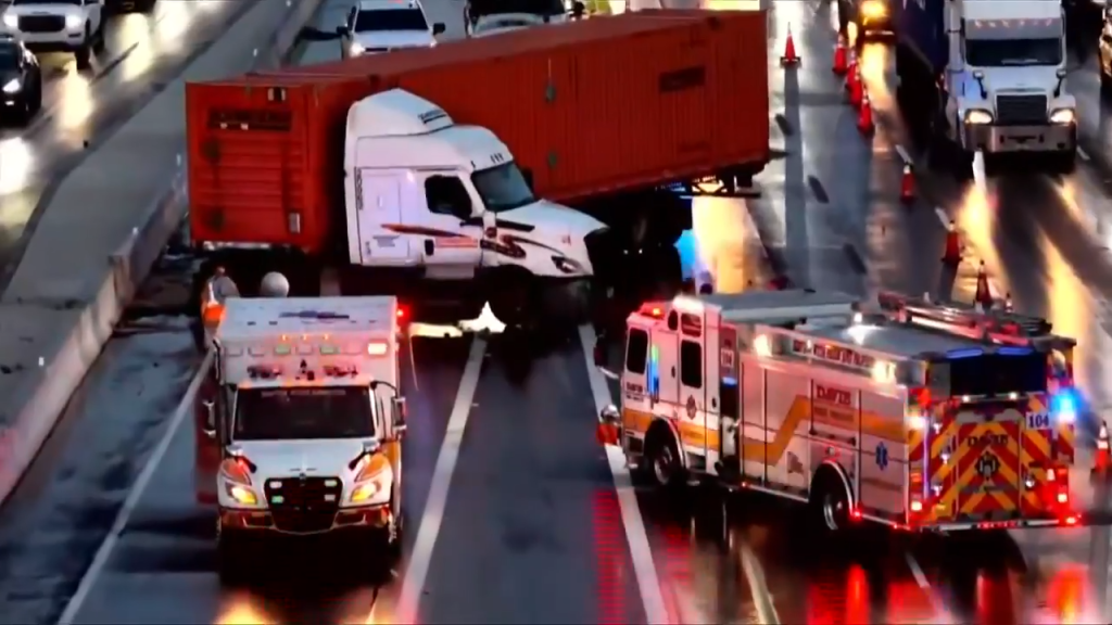 Jackknifed semi-truck causes blockage on I-595 eastbound in Davie