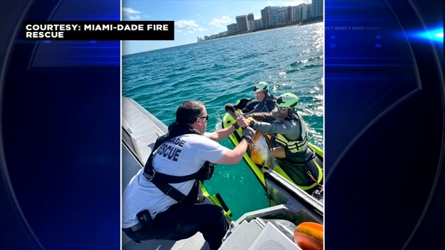 Lifeguards rescue dolphin calf wedged between rocks off Haulover Beach