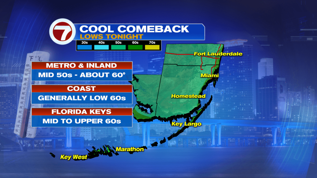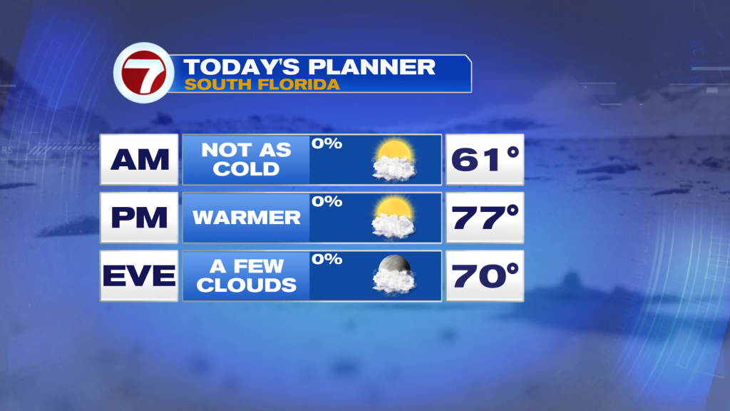 It still was cold across much of the area this morning, however, with widespread lows in the 50s across inland areas and even along the Broward County coast.